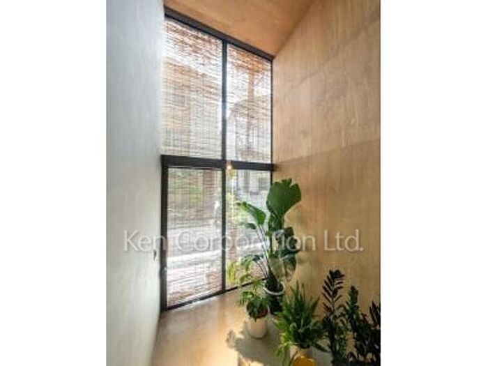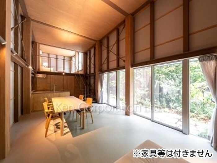 吹抜や窓の多さが開放感を演出している1LDK住戸。庭の植栽を眺めることのできるお部屋です。気密性が高く、冷暖房効率にも優れた住宅となっております。