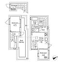 メゾネット仕様のお部屋。3口ガスコンロ・食洗機付きのキッチン、浴室乾燥機付きのバスルームなどの室内設備付き。通りから奥まった土地に位置するデザイナーズマンションです。