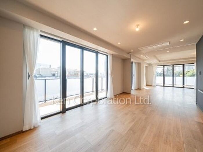 天井高2.8m・サッシ高2.4mが生む伸びやかな室内空間。突板フローリングの上質な質感に、大空間リビング、2バスルームを備えた余裕ある邸宅仕様。