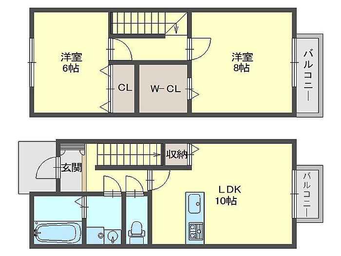 ファミリー様に嬉しいメゾネットタイプの間取り。10帖あるリビングは家族が増えても住み続けられます。