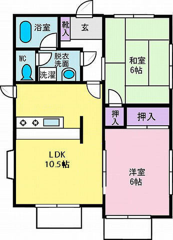 新婚さん・ファミリーに使いやすい2LDKの間取り。設備充実。おすすめです。