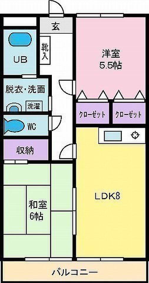 甲斐市竜王、和洋室2LDK、LDKは広々8帖タイプ。