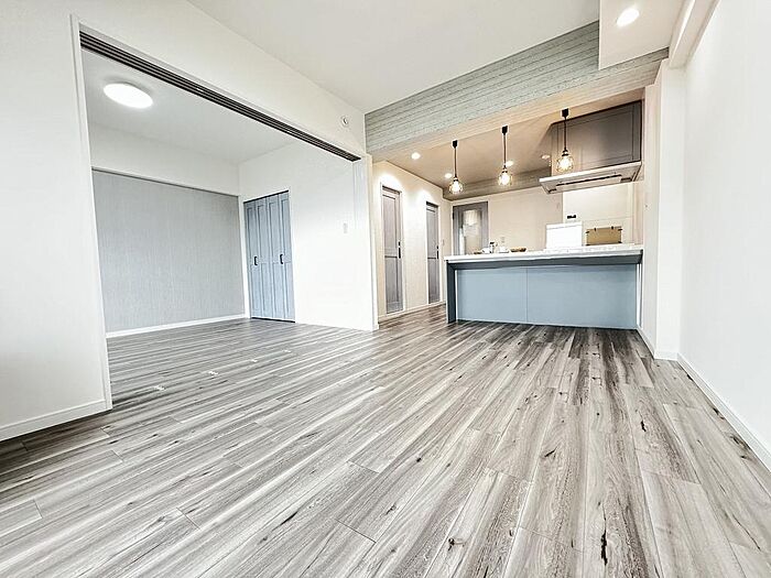 内装全面フルリノベーション済 ・ペニンシュラ型フラット対面システムキッチン・ユニットバス・洗面化粧台・ウォシュレットトイレ・フローリング・建具・クロス・フロアタイル・窓枠ダイノック・スイッチコンセント 他