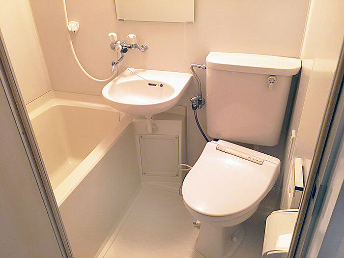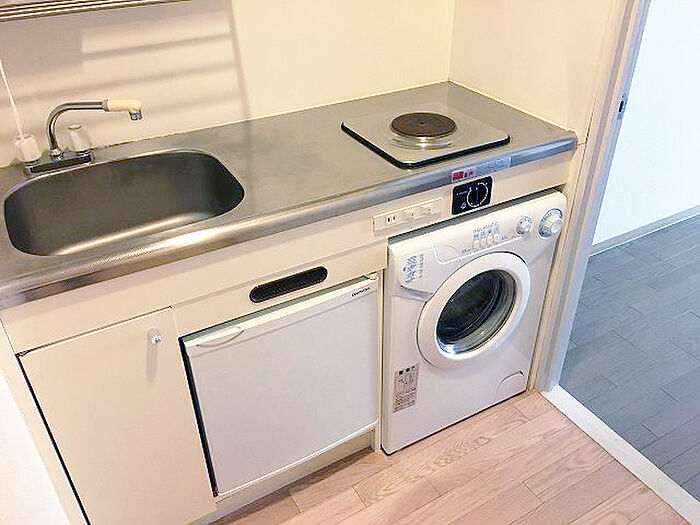 オートロック付の1Kマンション。南向きのお部屋です。エアコン・ミニ冷蔵庫・洗濯機付き。