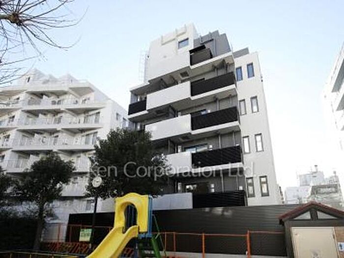 下二児童遊園の西側に建つ賃貸マンション。機能性を考えたレイアウトを採用した高級賃貸シリーズ。目黒駅までの道のりは、春に桜が咲き誇る目黒川沿いを抜け650m。
