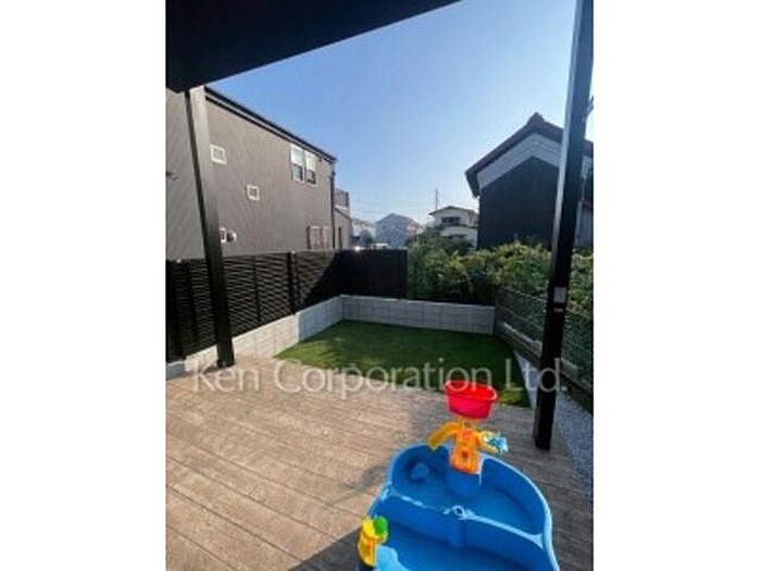 辻堂の築浅戸建。専用庭は子どもの遊び場・夏は水遊び可能。駐車場2台付き(EVコンセント利用可能。)吹抜LDK21帖。 DENは在宅勤務におすすめ・アイランドキッチンで開放的収納充実