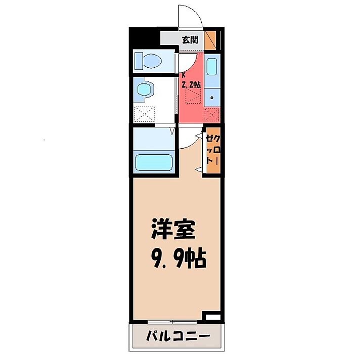宇都宮市下荒針町 アパート 1K/2階