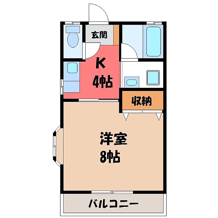 宇都宮市雀の宮5丁目 アパート 1K/1階