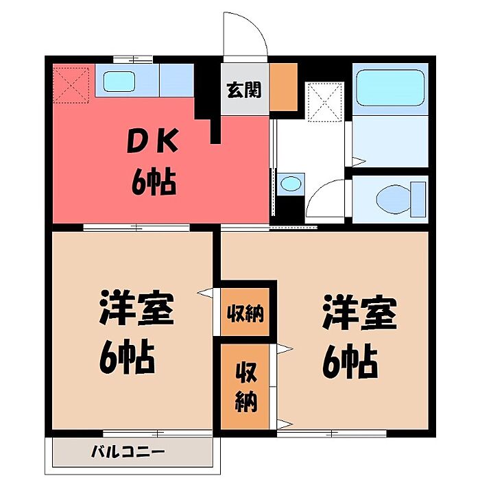 宇都宮市上横田町 アパート 2DK/1階