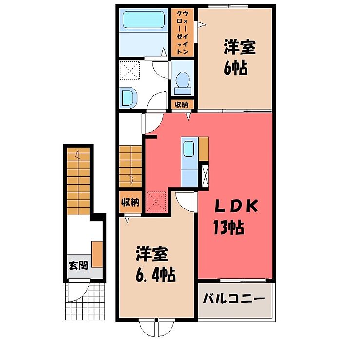 鹿沼市茂呂 アパート 2LDK/2階