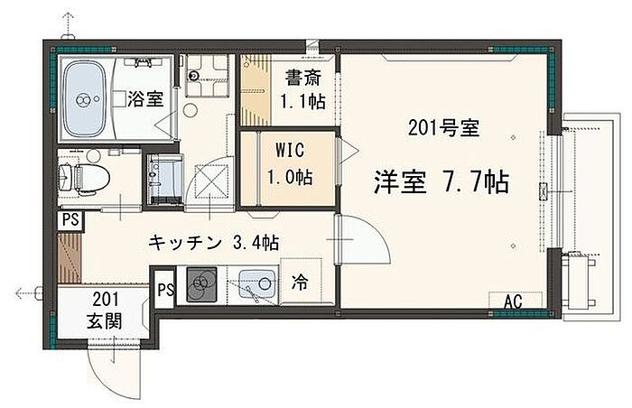 書斎付の1Kです♪インターネット無料!追焚・浴室乾燥機・温水洗浄便座・洗髪洗面化粧台!など設備面も充実♪