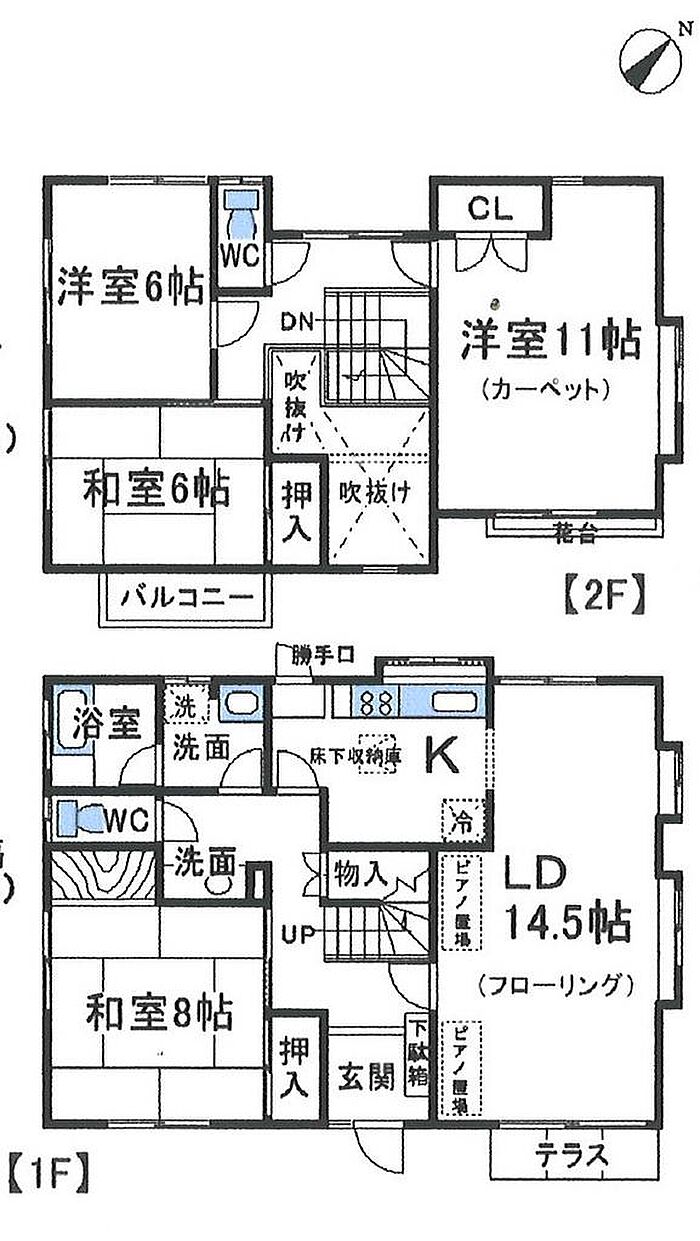 CATV視聴料、自治会費、退去時ハウスクリーニング費用契約時に必要120000円 2年以内違約金有1か月 庭木借主管理 保証人要 物置有 給湯器新調R4.10 ペット不可