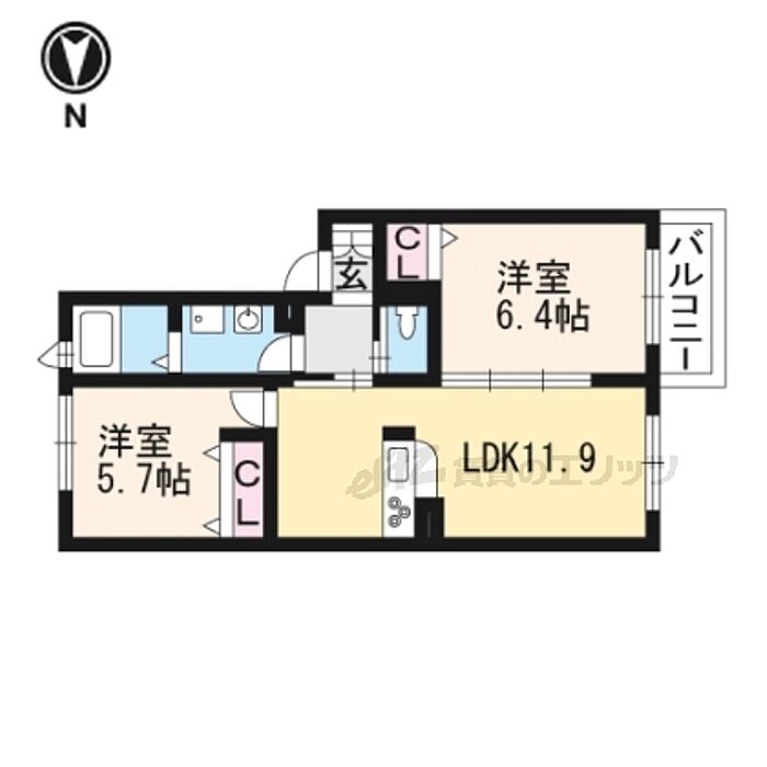 京都市山科区大塚野溝町 アパート 2LDK/2階