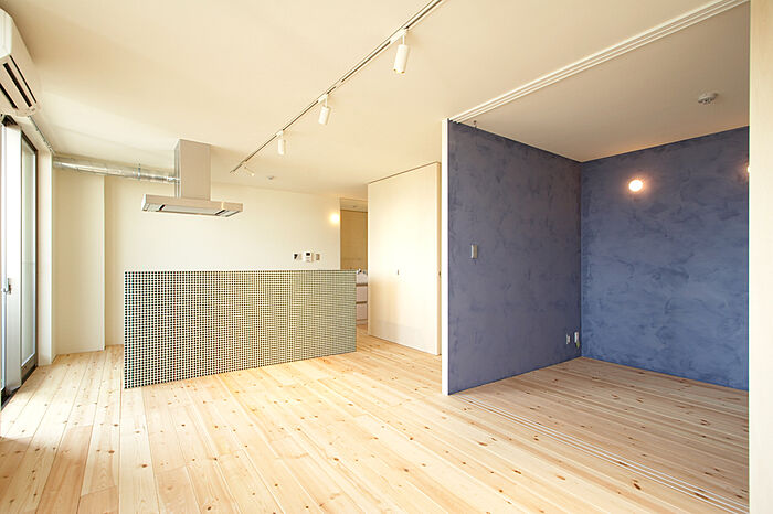 デザイナーズマンションではめずらしく1LDKで47m2もの広さがあり,さらに室内の圧迫感をなくす為「逆梁工法」設計により通常天井から出ている梁(はり)をなくし〜ゆとり〜ある室内空間を実現しました。設備や材質にもこだわり「アイランドキッチン」「ポーターズペイント」床は「無垢フローリング」等を使用。デザインだけでなく「住心地や住やすさ」も考え設計し、両方兼ね備えた新タイプの「デザイナーズマンション」