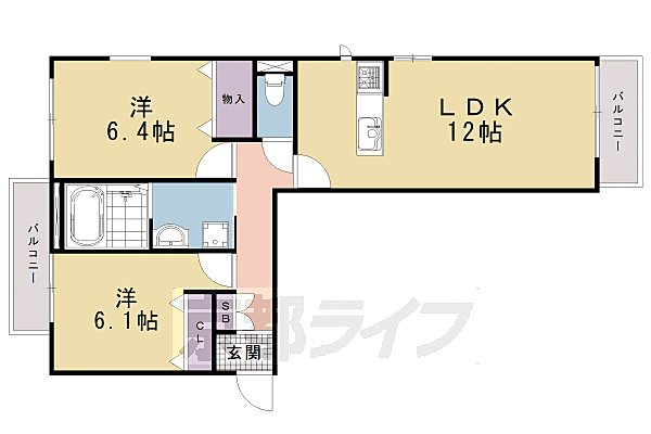 京都市伏見区羽束師菱川町 マンション 2LDK/3階