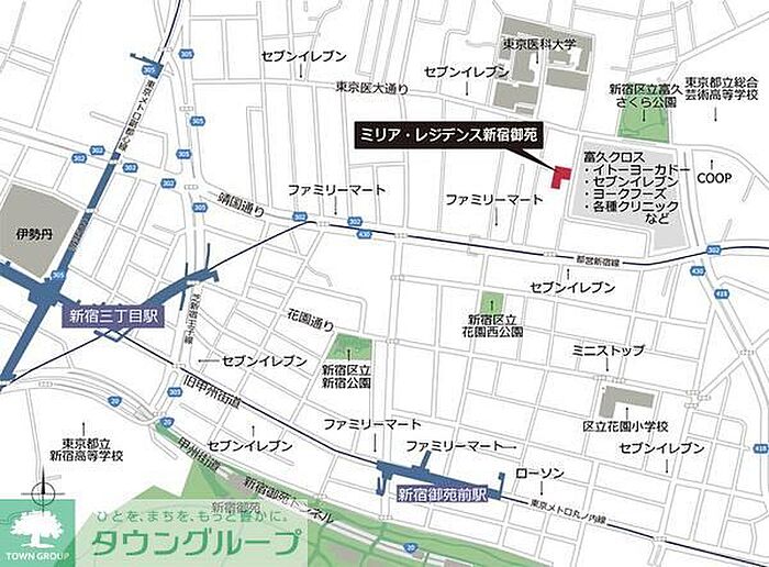 新宿花園郵便局 320 m