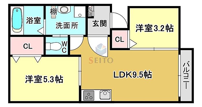 (リビングダイニングキッチン 9.5帖