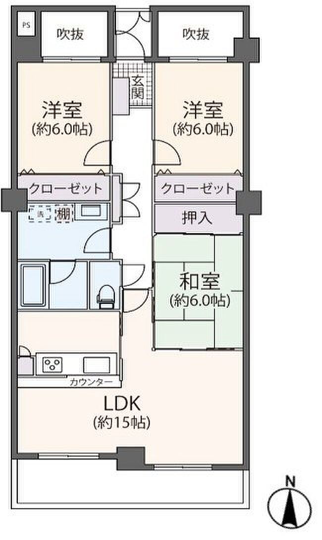 3LDKファミリータイプ 使い勝手の良いカウンターキッチン 浴室乾燥機で快適な暮らしをサポート