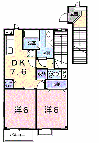 エアリーハウス A 202 2DK/2階