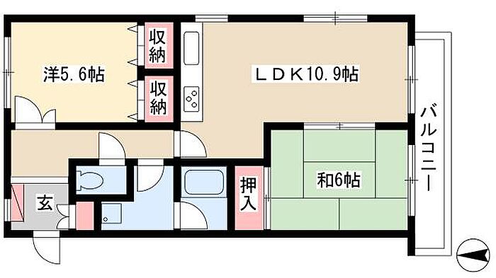 クレセントマンション 2LDK/4階
