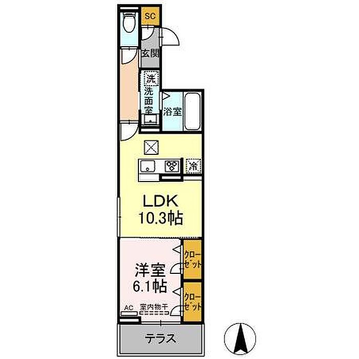 セレスティア助光 B棟 1LDK/2階