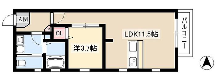クラージュ本陣 1LDK/1階