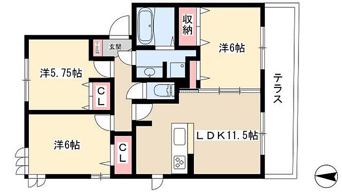 ハロウェル B棟 3LDK/1階