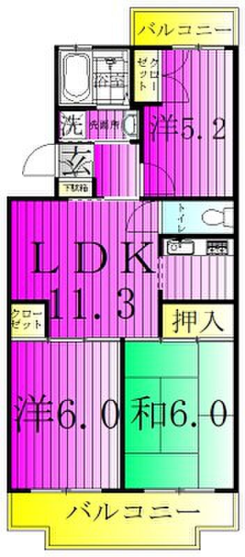 ジュネ向山二番館 102 3LDK/1階