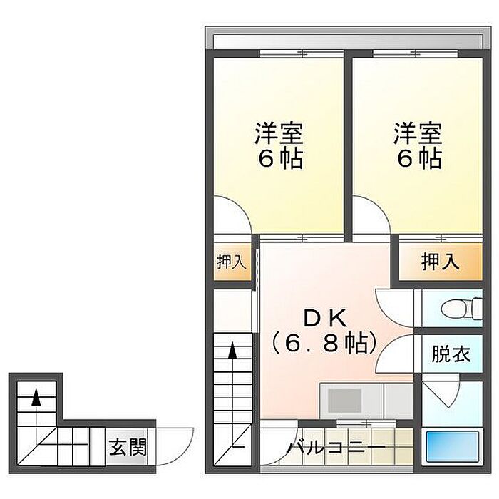 桜が丘テラス E 2DK/2階