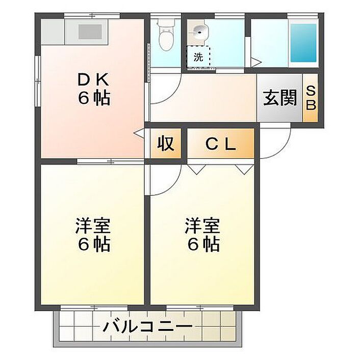 サウスアベニュー・エヌ B棟 201 2DK/2階