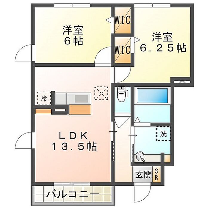 アモロッソ B棟 102 2LDK/1階