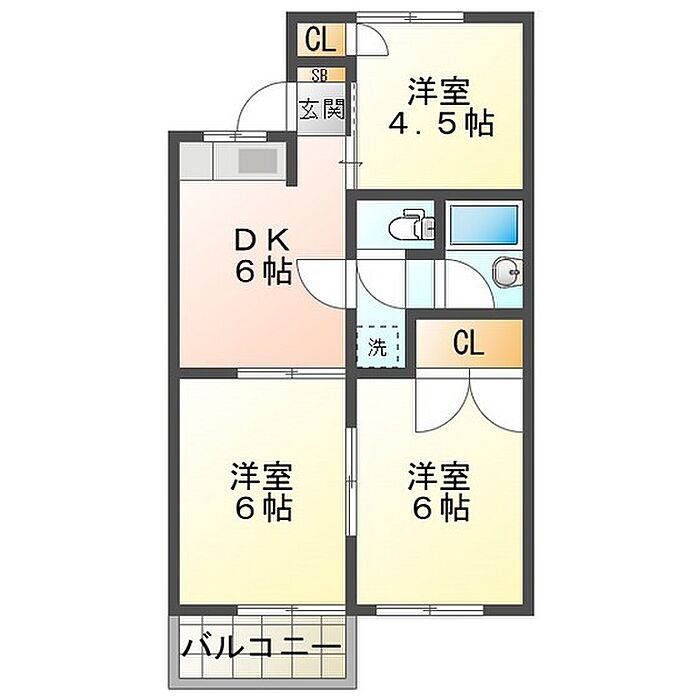 ノーブル三ツ谷 206 3DK/2階