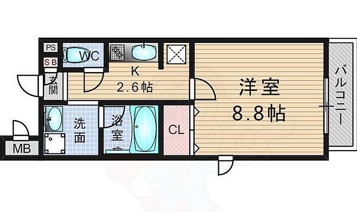 サウス・サントゥールくいな橋 1K/2階