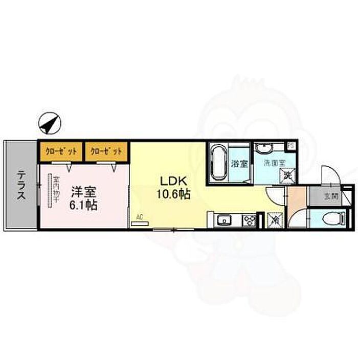 太秦レジデンスE棟 1LDK/2階