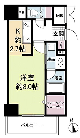 ウェルブライト博多ステーション 807 1K/8階