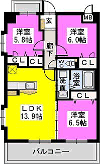 コンフォート東比恵 803 3LDK/8階