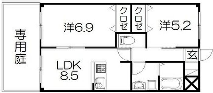 クレールシャンブル 102 2LDK/1階