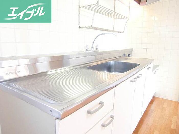 キッチン広々。伊島小学校区はファミリーさんに大変人気の学校区。環境も良好です。