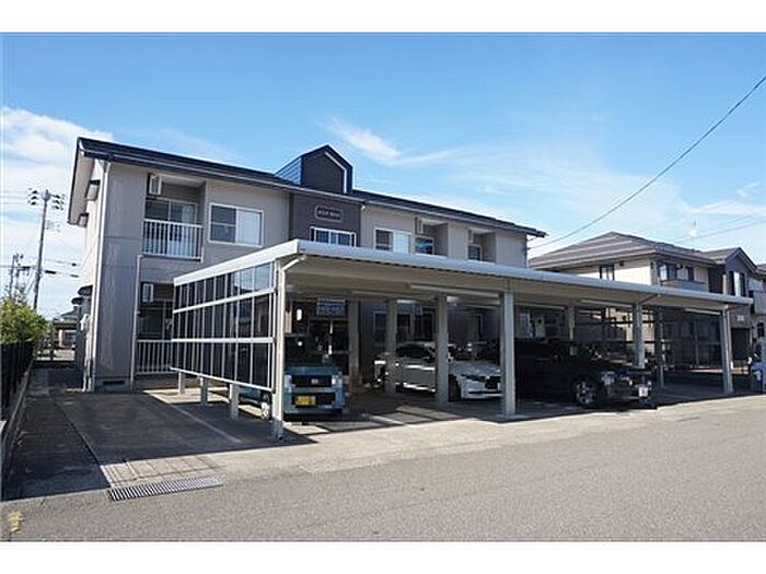 駐車場にカーポート付きのアパートです。最寄りの駅・コンビニ・スーパーが徒歩10分圏内で便利な立地です。