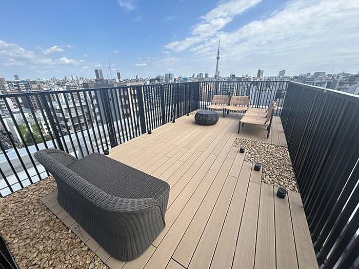 テラス、ビジネスラウンジのある共用部ハンズフリーキー対応内廊下設計新築キャンペーン フリーレント1ヶ月