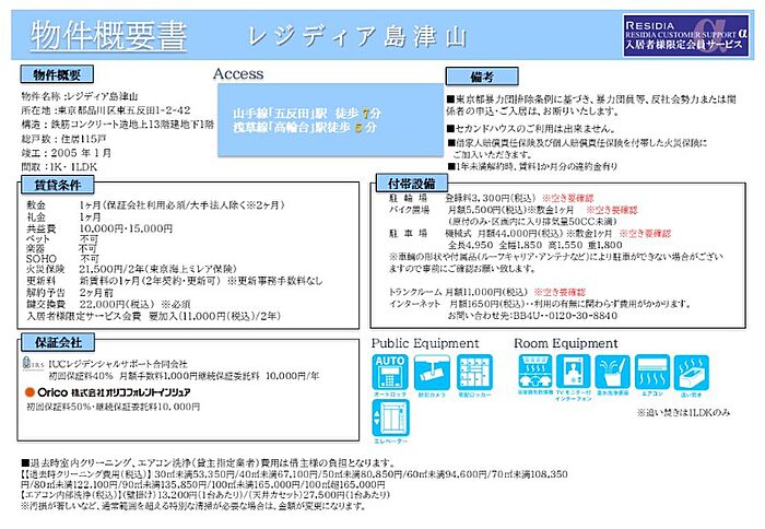 保証会社利用料:初回契約時:40%、更新時:10、000円、月額:1、000円、※保証会社の更新は1年毎となります