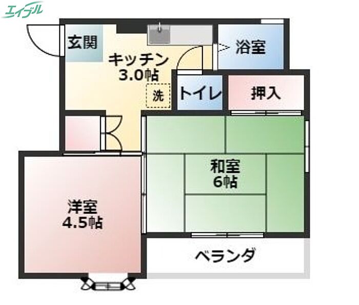 岡山市南区泉田 アパート 2K/3階