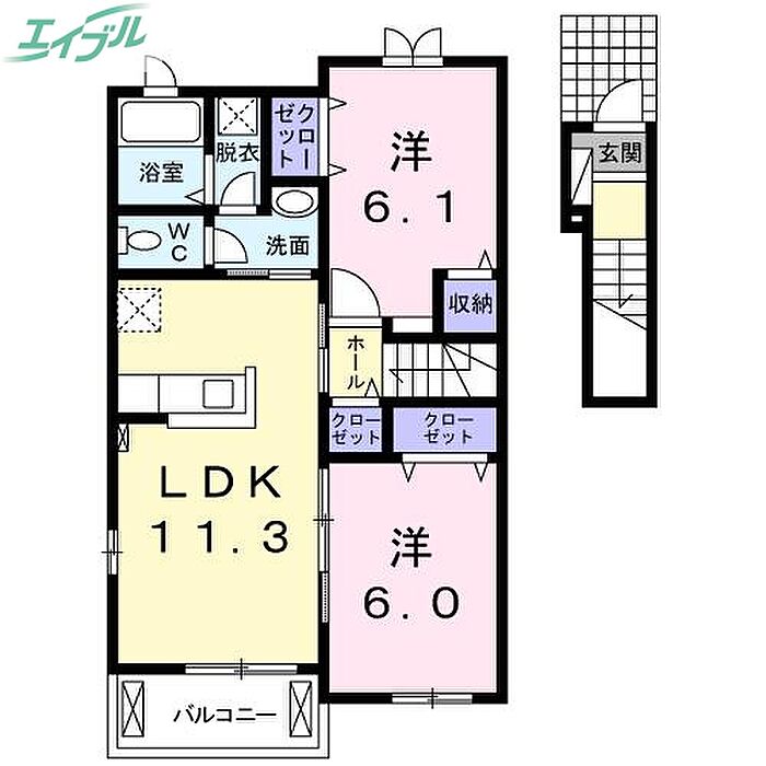 玉野市長尾 アパート 2LDK/2階
