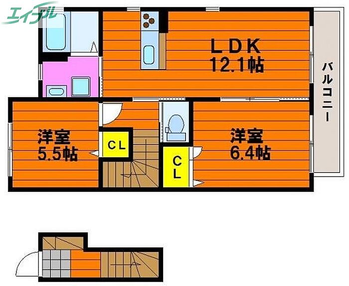 岡山市中区江並 アパート 2LDK/2階
