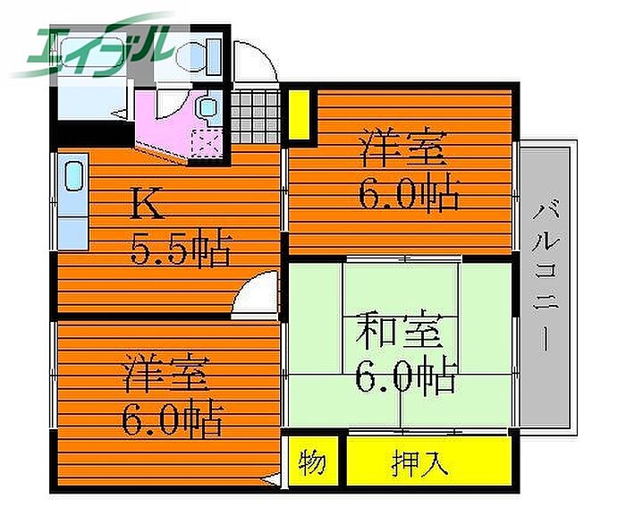 岡山市南区当新田のおすすめ3Kです。バス・トイレ別、温水洗浄暖房便座付き。