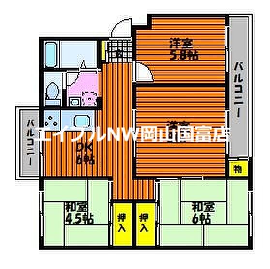 岡山市中区高屋 マンション 4DK/3階