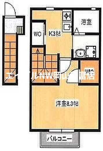 岡山市東区宍甘 アパート 1K/2階