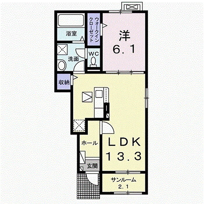 鍵セット費:3300円 【インターネットWiFi無料・1階人気のサンルームタイプのお部屋です♪】防犯カメラ・宅配BOX・物置・ゴミステーション完備◎WIC・エアコン2基付き◎