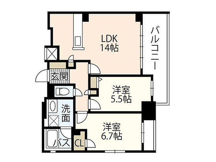 ライオンズ国泰寺グランアクシス 2LDK/7階