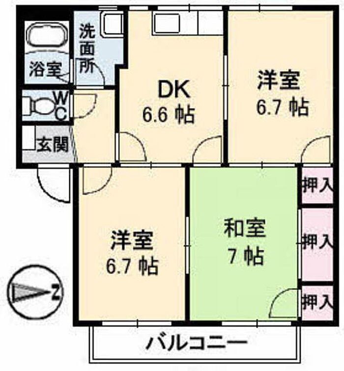 ミニオンハイツ B棟 3DK/2階